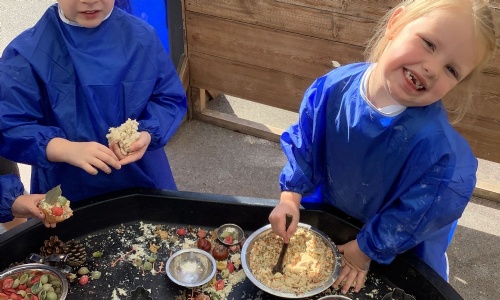 🌿 Getting messy in the mud kitchen – cooking up muddy masterpieces with friends.