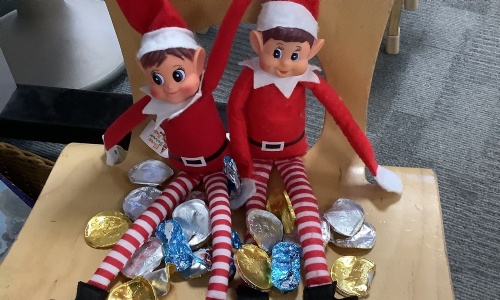 Our cheeky elves went on a wild chocolate rampage, devouring every last Advent calendar treat. When we found them, the scene was chaos — empty pockets, torn doors, and chocolate wrappers scattered like confetti across the room!