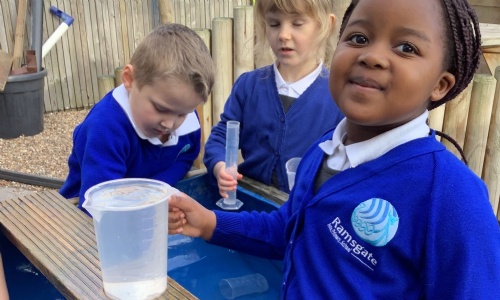 The children explored the concepts of full, empty and half full through a hands-on sand and water activity. Using jugs and containers, they poured, filled, and emptied independently, noticing how the levels changed.