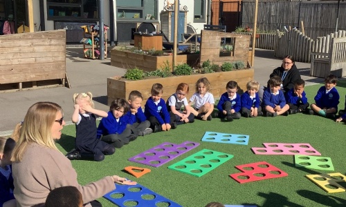 The children had a fantastic first day back after the Easter holidays, made even better by the sunshine! We took our maths learning outdoors and jumped straight into exploring the composition of 10. Using a giant Numicon 10 piece, the children had great fun finding different ways to combine smaller Numicon pieces, fitting them together on top to make 10. It was a lively, hands-on session full of energy, teamwork, and big smiles in the sun.