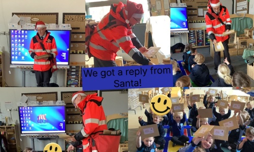 Today we had the most exciting surprise — Father Christmas replied to our letters! The postman even popped into the classroom to deliver them because they were a special North Pole delivery. He told us he had to be very careful… the envelopes were full of Christmas magic! ✨