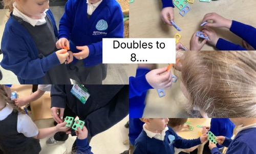You could practise this at home using small objects such as pasta, toys or socks. Find a number, then find the same amount again. Put them together and say the double.