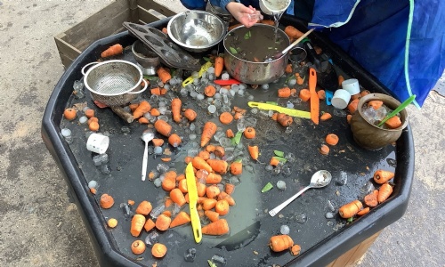 This is a great example of child-led play. The children followed their own ideas, experimented with materials and used their imagination to create something new. They were mixing, pretending, talking and working together as their play developed.