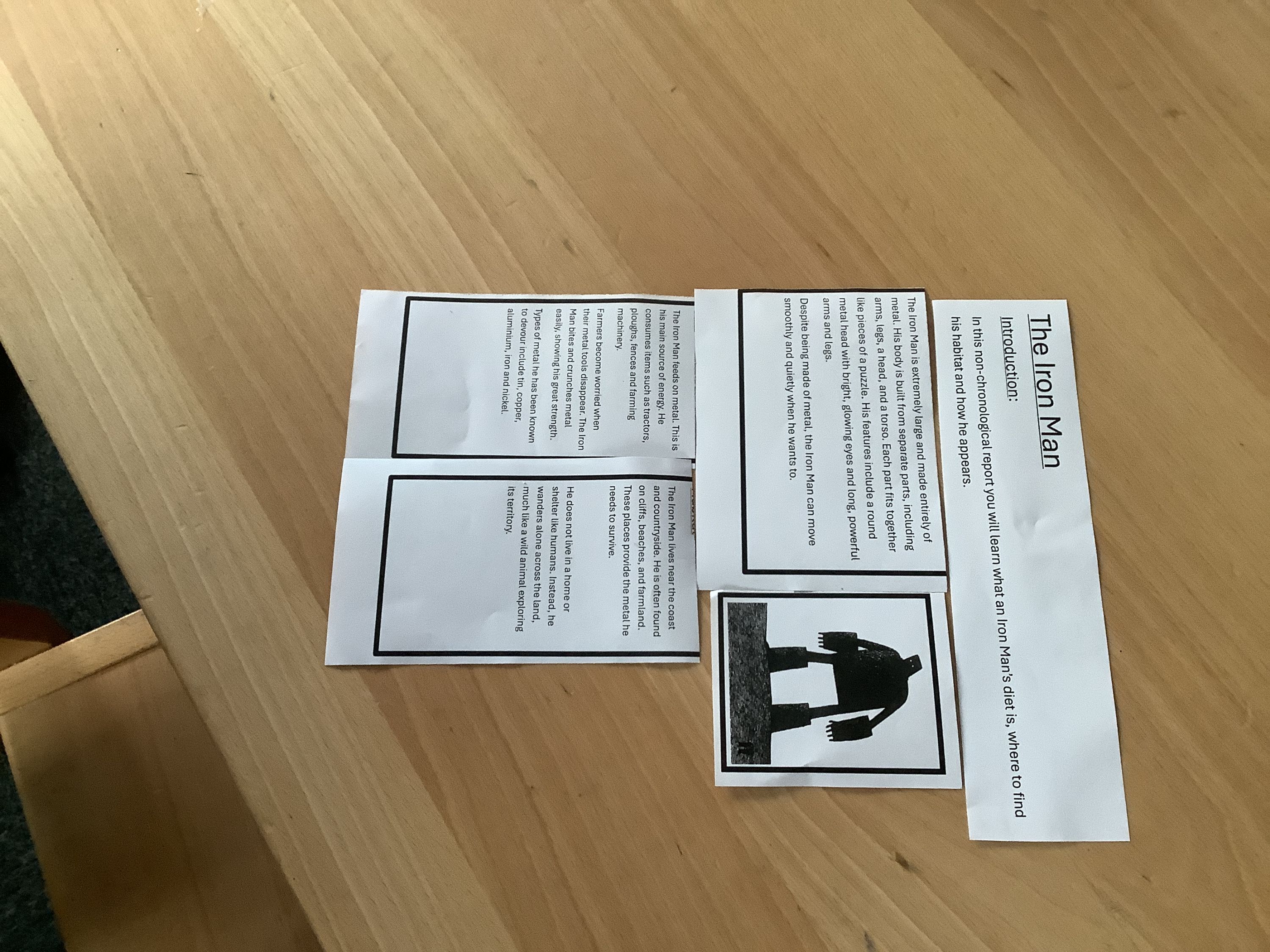 This week in English we will be writing about the Iron Man from our story 'The Iron Man' by Ted Hughes as if he were a real creature. During the past week we have explored present tense, formal language and fact versus opinion, and today we looked at how we can structure a non-chronological report.