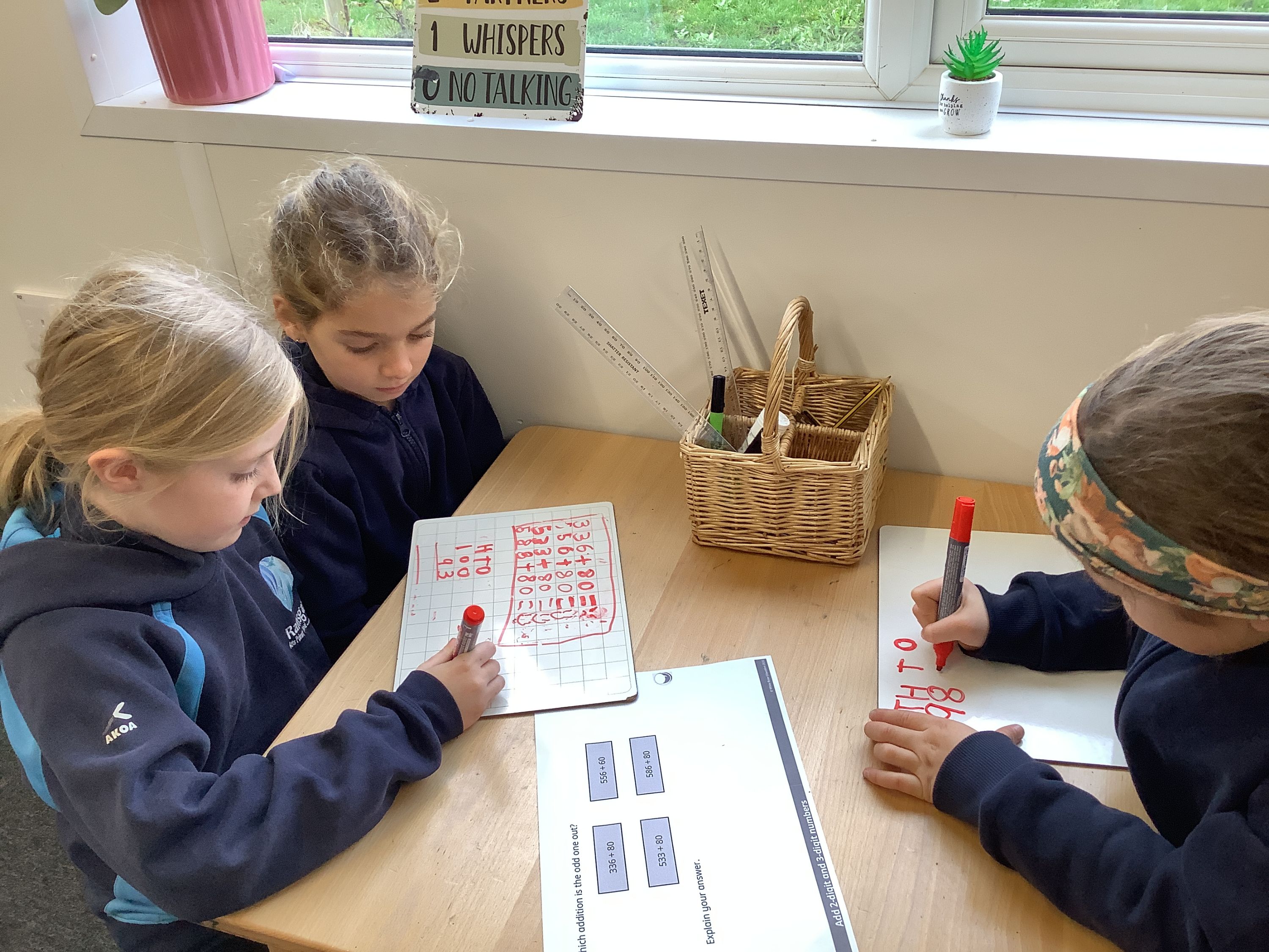 We loved moving around the room to solve different problems involving addition and subtraction with our partners.