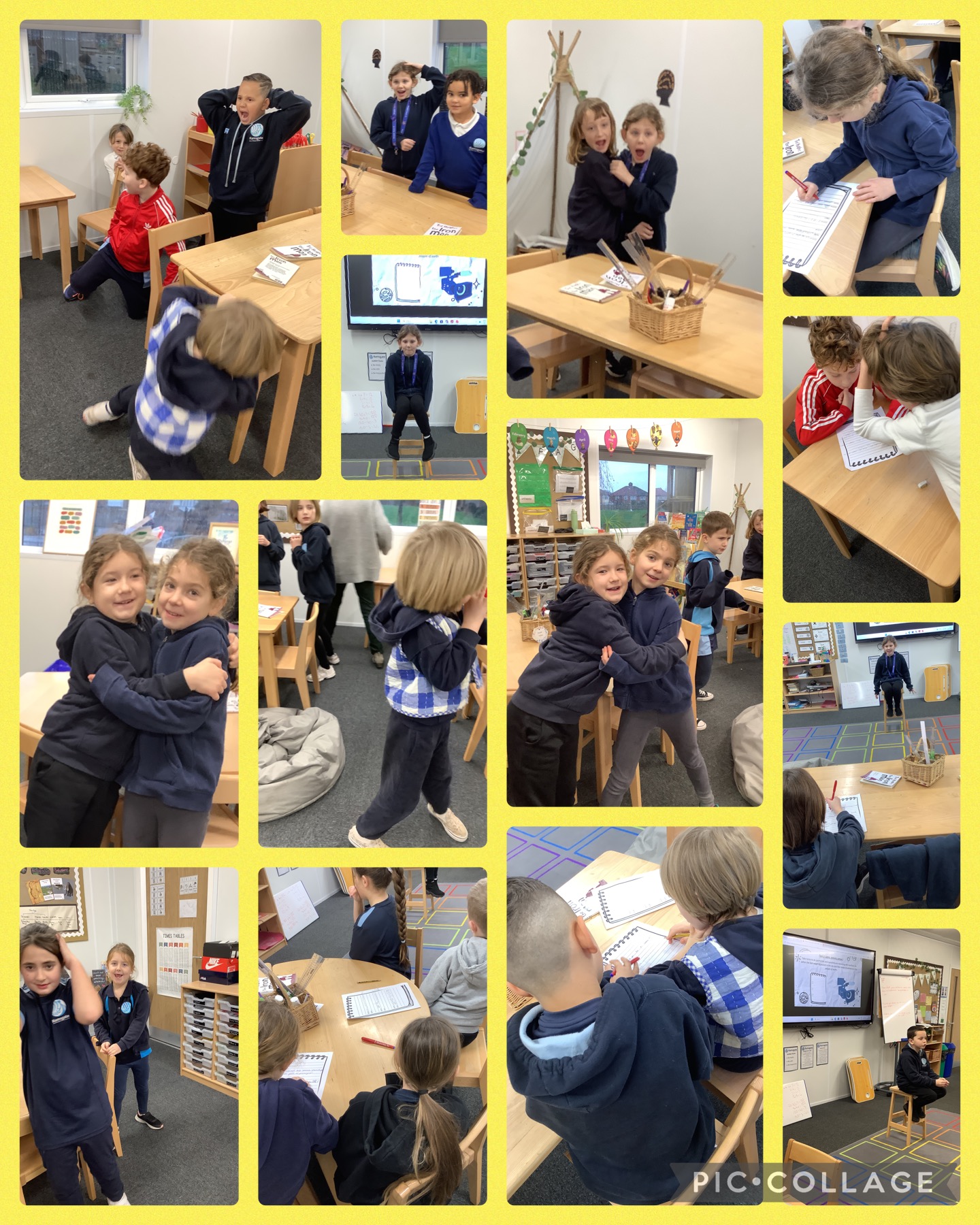 Then, on Tuesday, we became news reporters! We began by reading Chapter 4 of our book and identifying the exciting event we are going to report on. We then had to roleplay how we would react if we had witnessed the event and seen the space-dragon land on Earth. Finally, we came up with questions to ask our key witnesses, before role playing as witnesses to jot down answers.