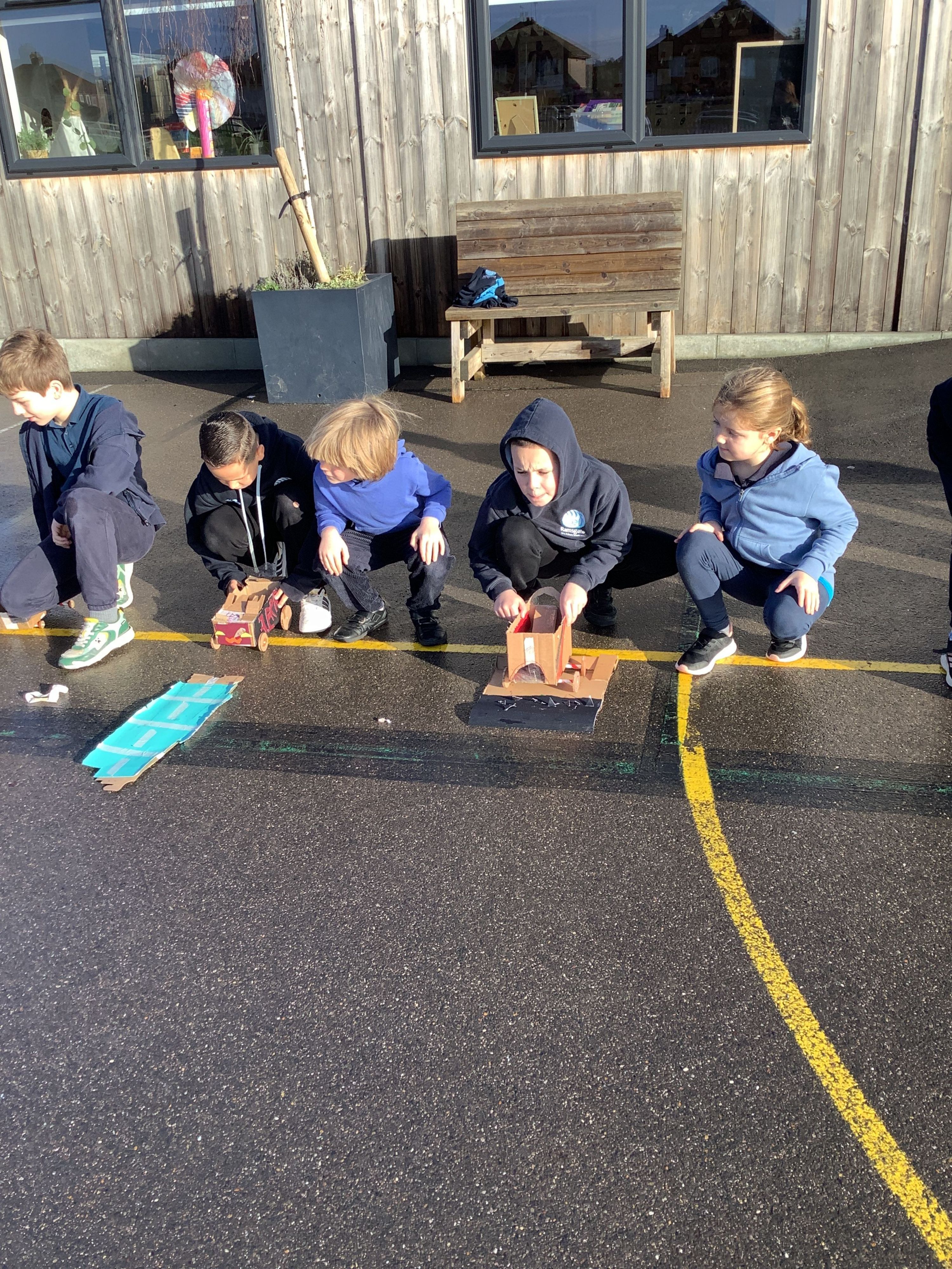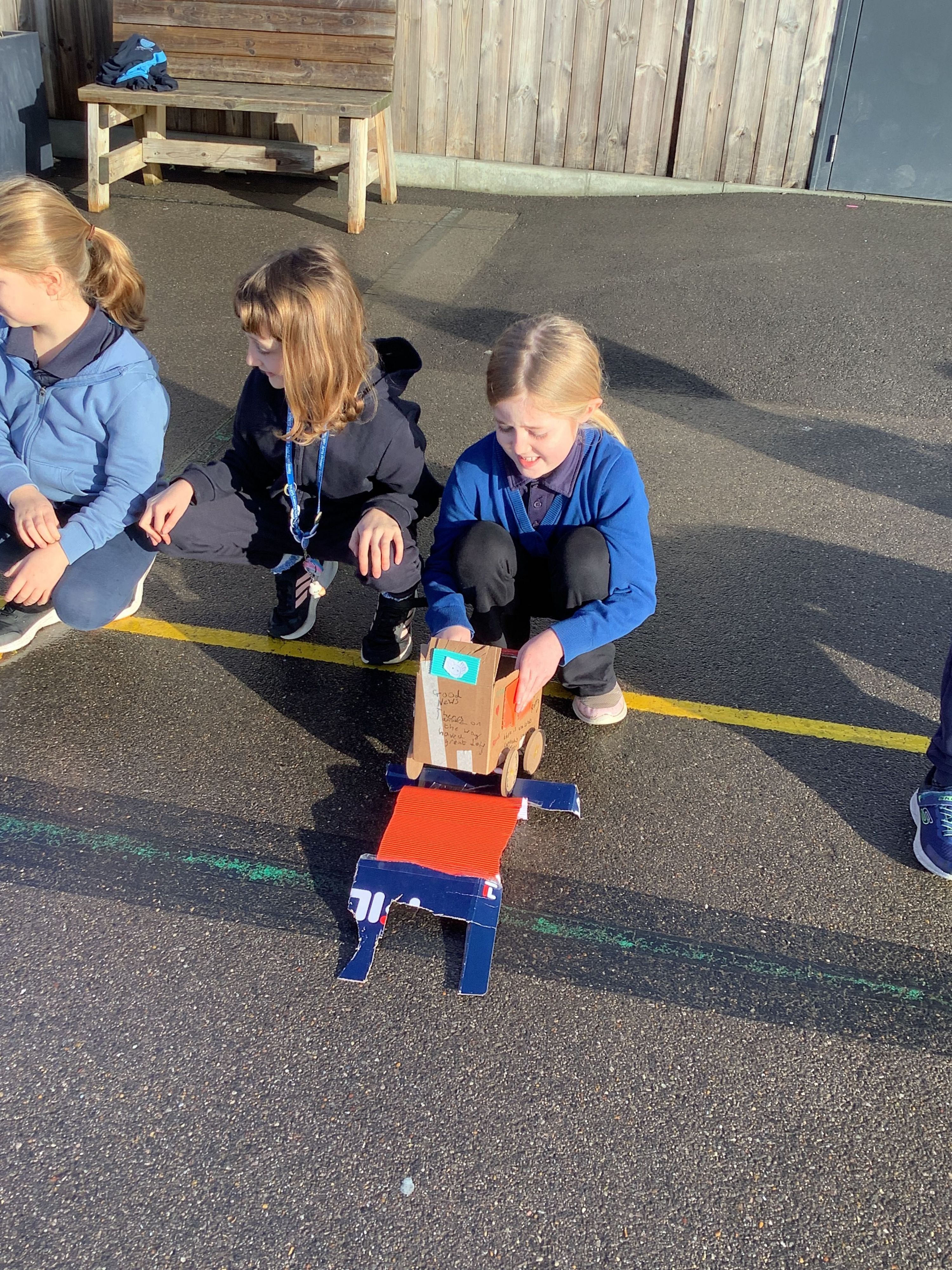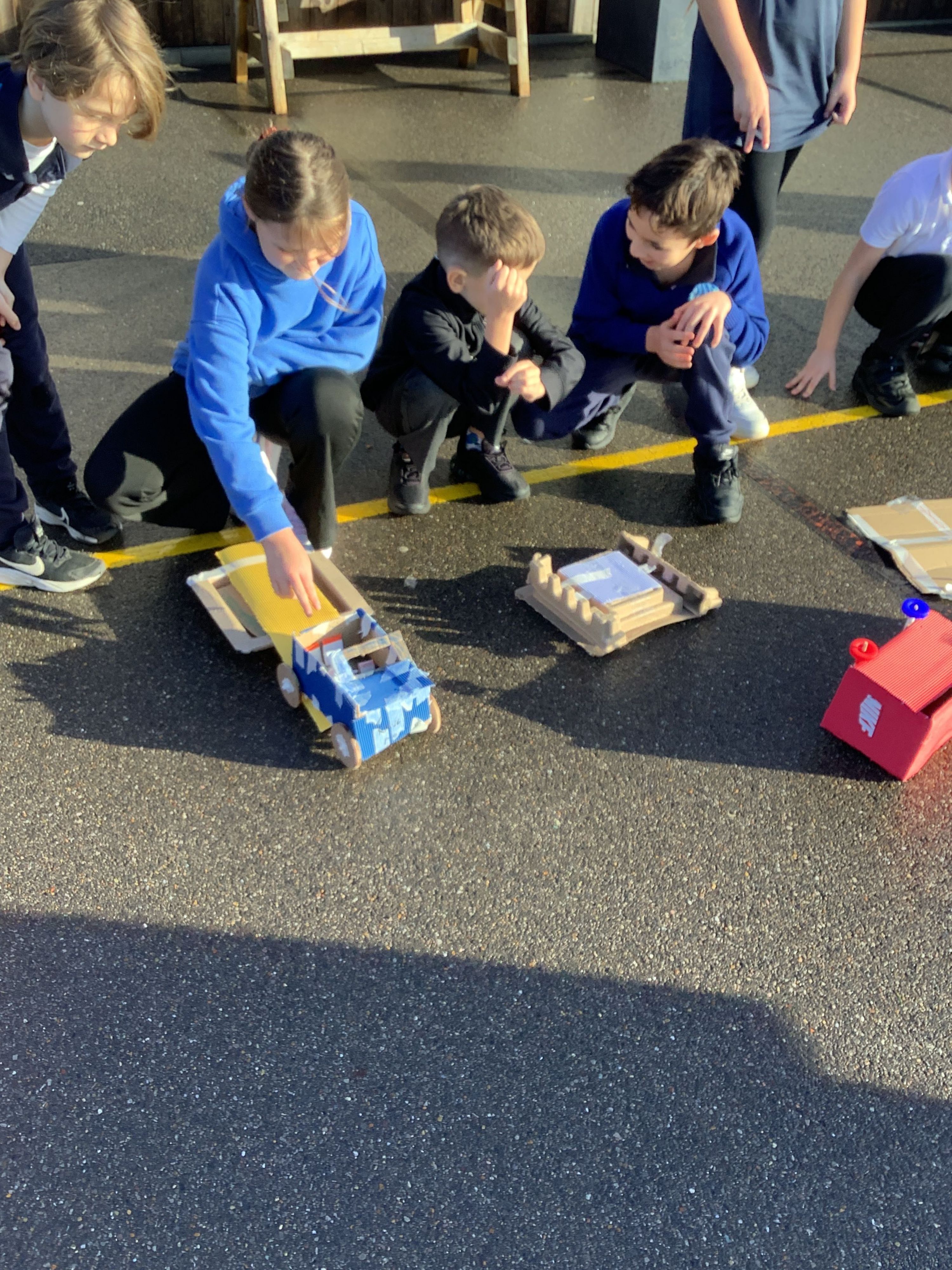 We began by designing surfaces made of different materials to test our vehicles on, as well as adding the finishing details to our designs. We then tested our vehicles to see which would travel the furthest and which were strong and able to stay together when travelling on different terrains.