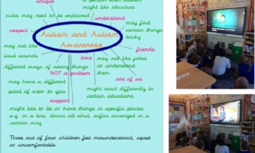 Today, Team Amin started to learn about what autism means and how it might affect people. We thought about certain traits that a person with autism or Asperger syndrome might display which we could relate to and we thought of key words and phrases for how we should respond too. We met Rosie, Lenny, Ben and several other children and listened to their experiences of living with autism before creating a mind map of our learning. Then, we thought about how we might “describe” ourselves and the traits and behaviours that we possess that others may not, which we have used to produce our own jigsaw piece about us!