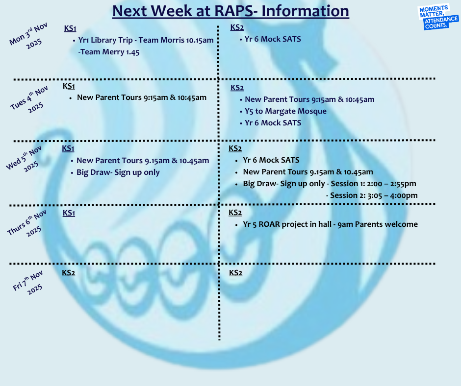 Next week at RAPS W/B Monday 3rd November