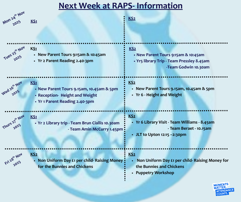 Next Week at RAPS W/B Monday 24th November