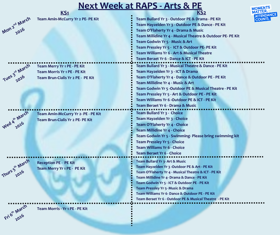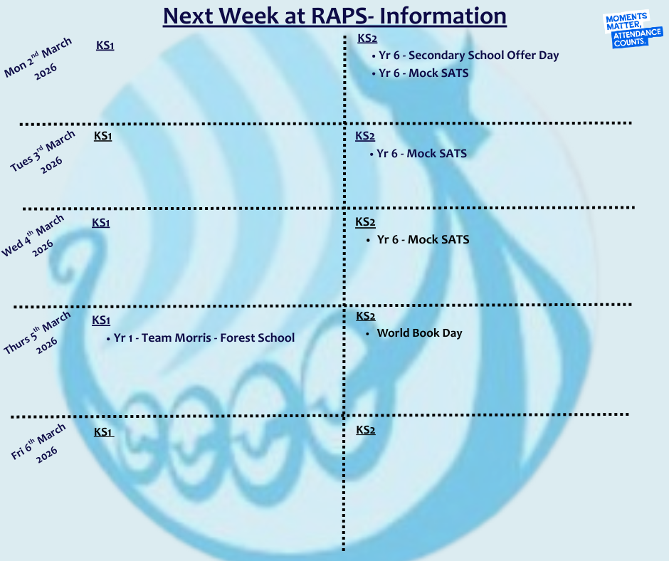 Next Week at RAPS W/B Monday 2nd March 2026