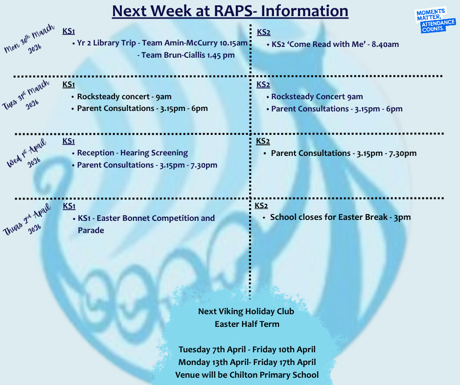 Next week at RAPS W/B Monday 30th March