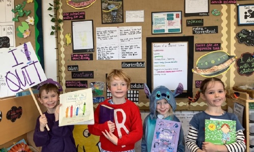 Our Year 2 children arrived at school to discover something incredible — a mysterious spaceship had crash-landed on the school field! The shiny wreckage, scattered “space rocks,” and strange footprints sparked instant excitement and curiosity. The children became space explorers, investigating clues and writing brilliant questions about its alien pilot. Who was on board? Where had it come from? Why did it land here? Throughout the term, the crash will inspire creative writing, teamwork, and imaginative role-play. What an unforgettable way to launch our new English text — learning truly blasted off in Year 2!