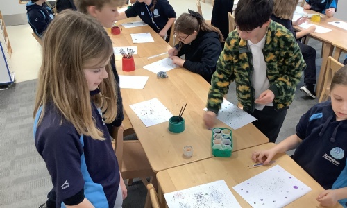 To begin our new topic, we have tried to create the impression of mould growing inside petri dishes, linked to the topic, 'Living Alive'...
