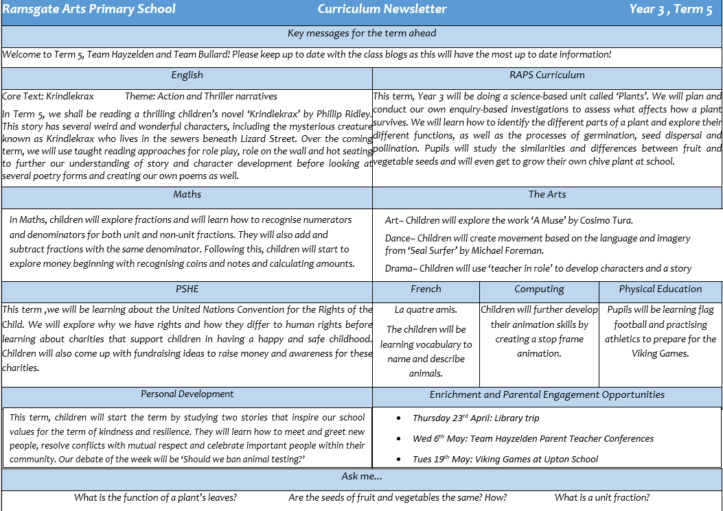 I hope everybody has a lovely Easter break. We look forward to welcoming everybody back in school for Term 5 on Monday 20th April.